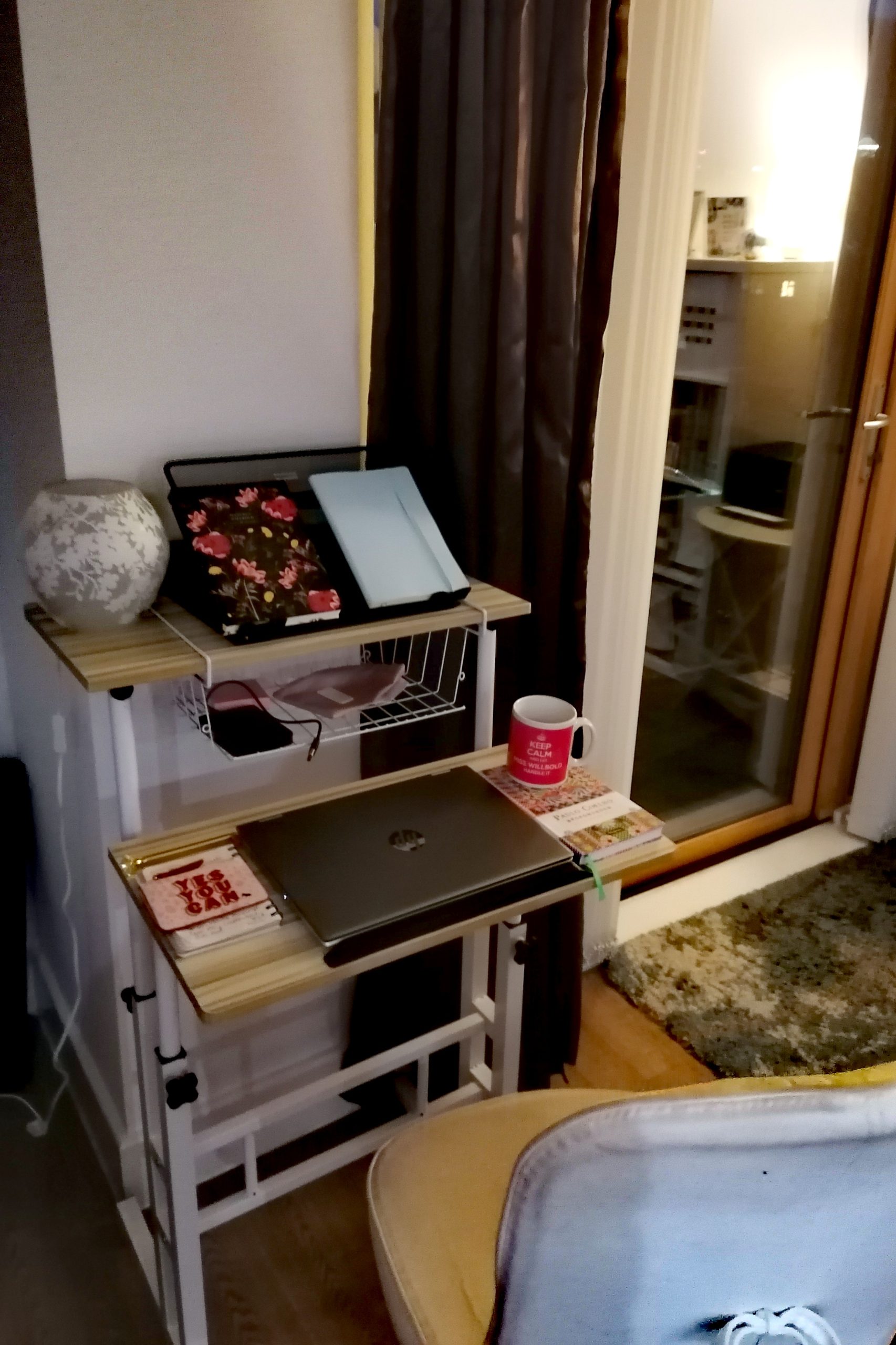 I realised how important movement breaks are at the home office and have added a standing desk, an exercise bike and yoga equipment to my home office: